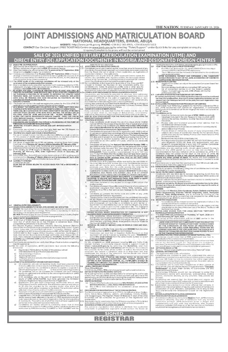 • JAMB has advised candidates to ensure their personal details, including National Identification Number (NIN) and contact information, are correct before registration to avoid issues.